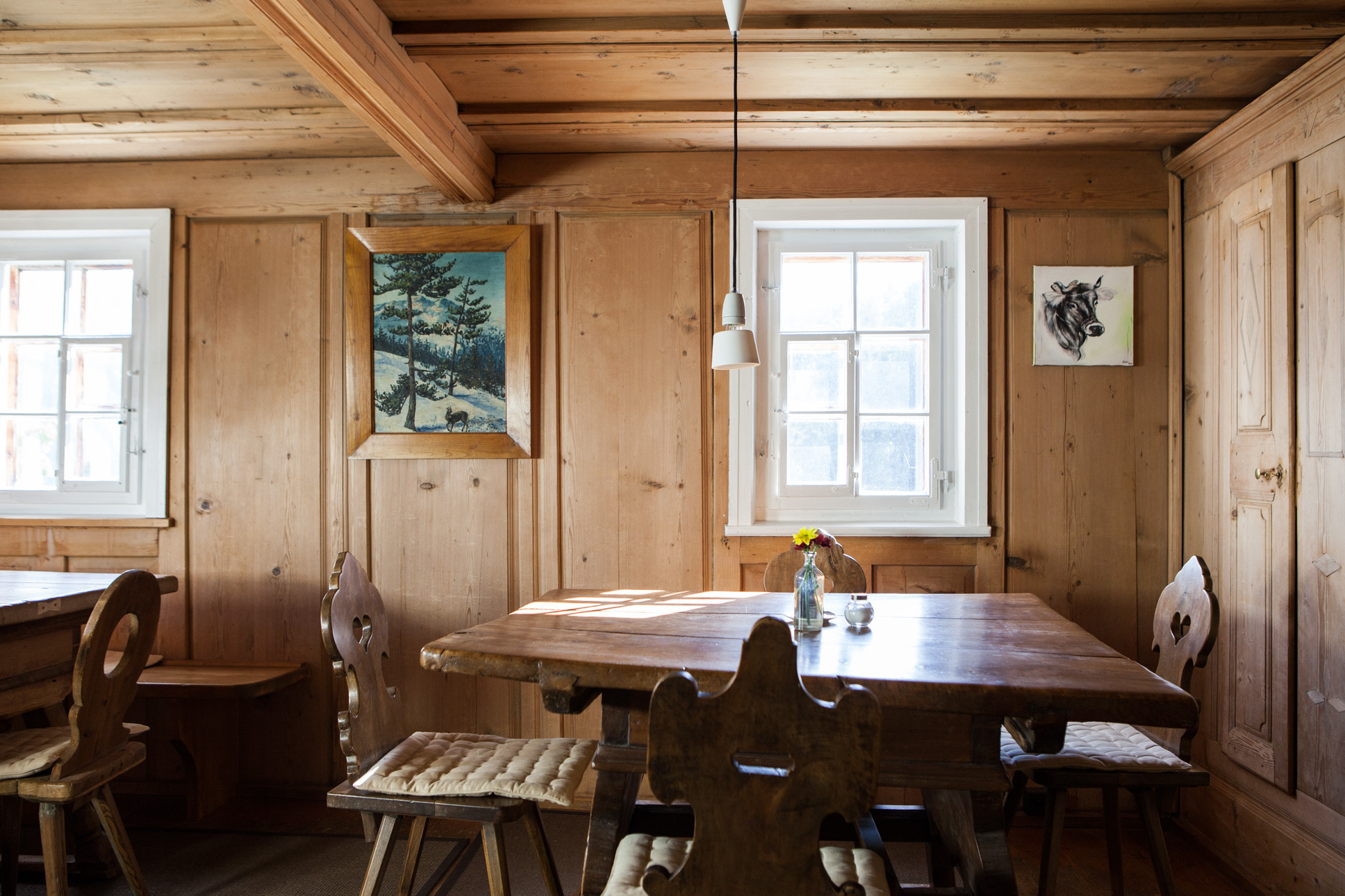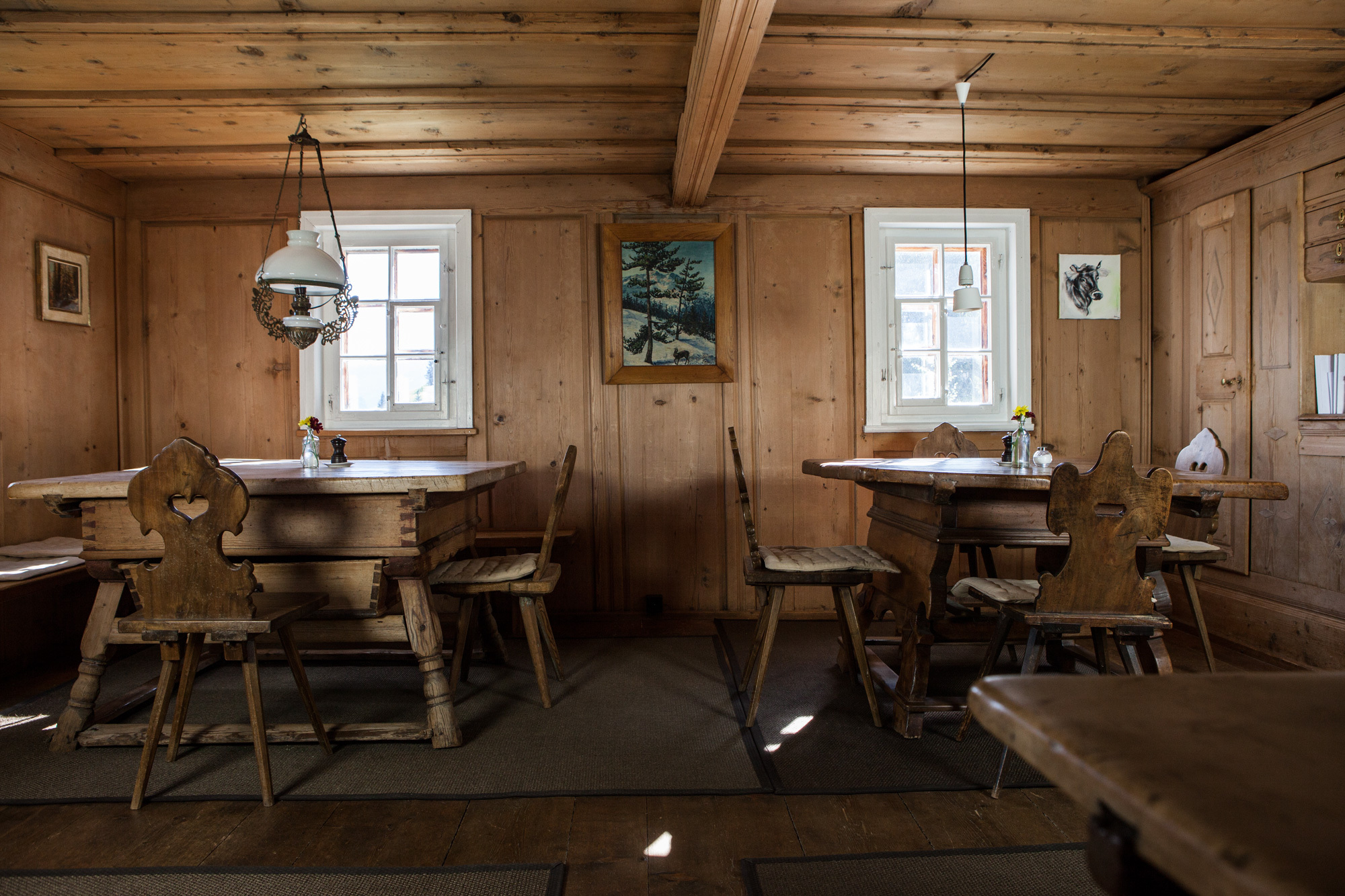 Frühstück, Nachtessen sowie Kaffee&Kuchen werden in der ehemaligen Stube des Bauernhauses eingenommen, die im Winter durch den Specksteinofen geheizt wird.